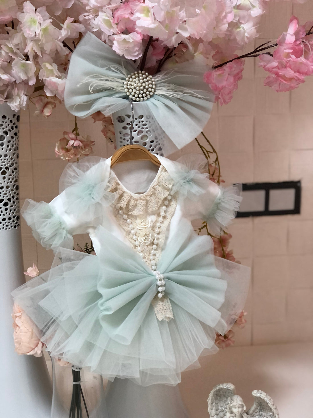 Delicate and enchanting, this baby blue tulle gown is crafted for newborns who deserve a...