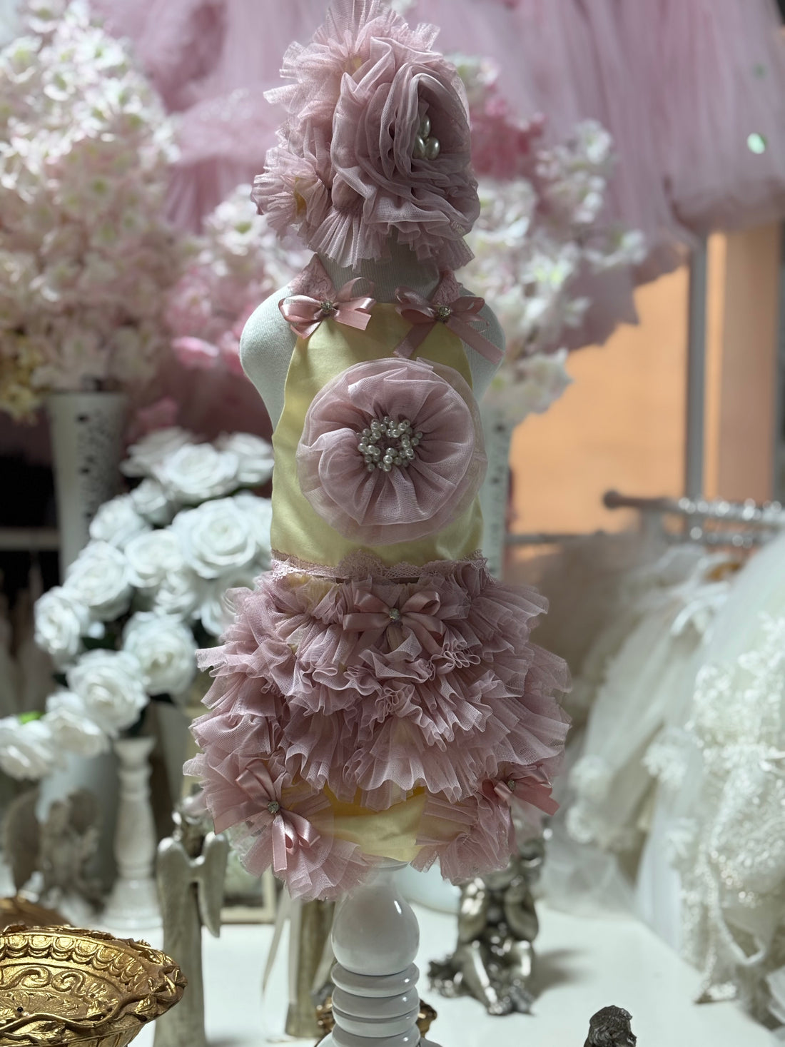 This elegant baby set is crafted from luxurious pink silk fabric, designed especially for unforgettable...