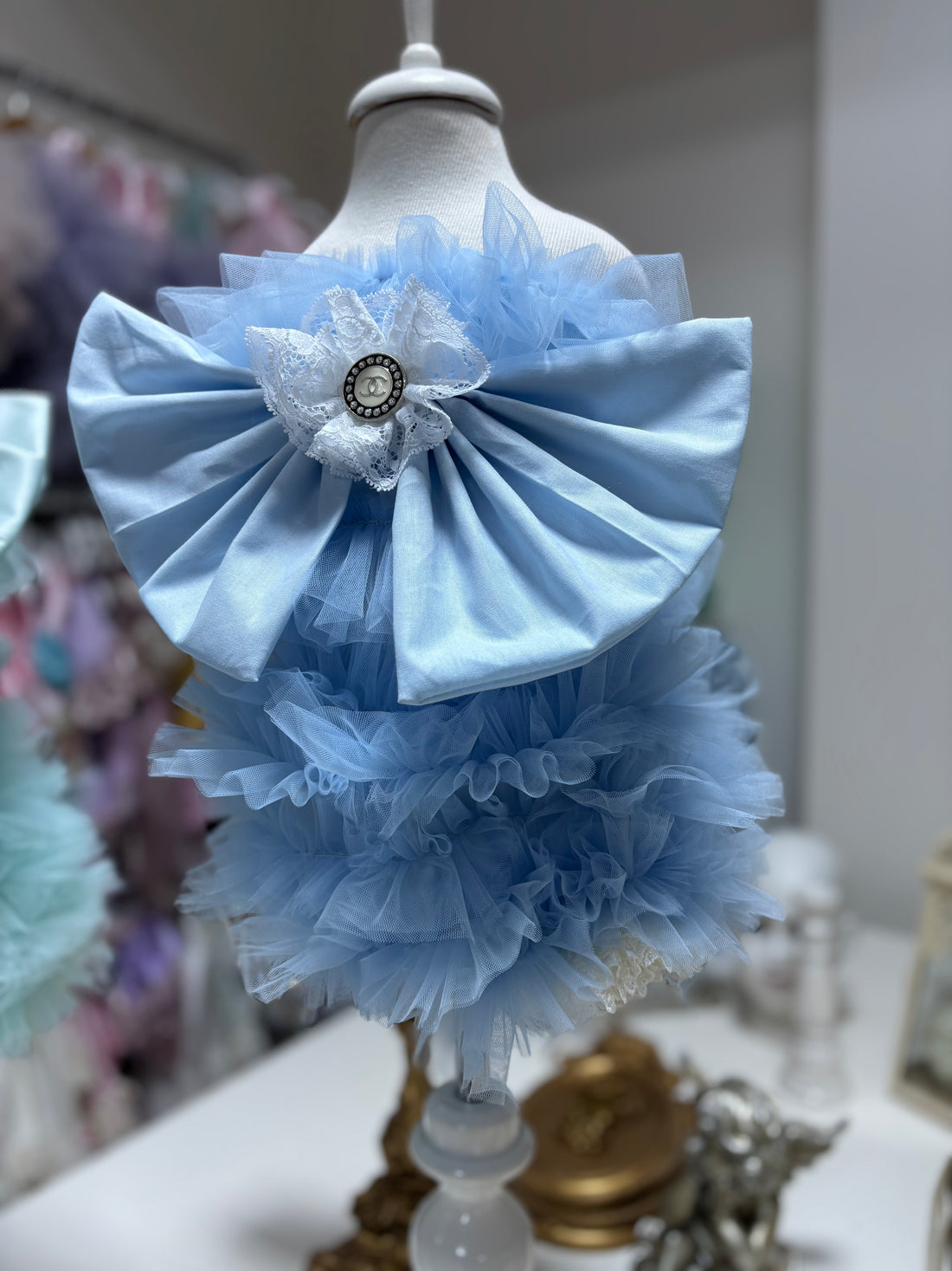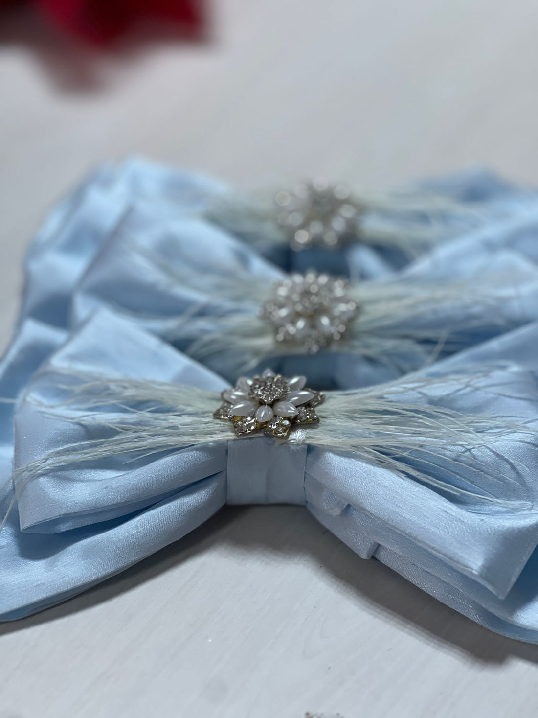 Baby Blue Rhinestone Bow Clips 10 inc
