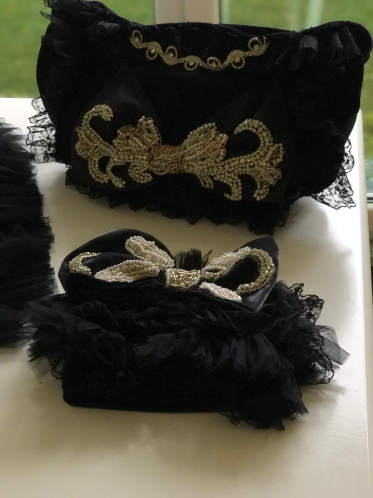 Black Baby Rhine Stone Diaper Bag And Bonnet