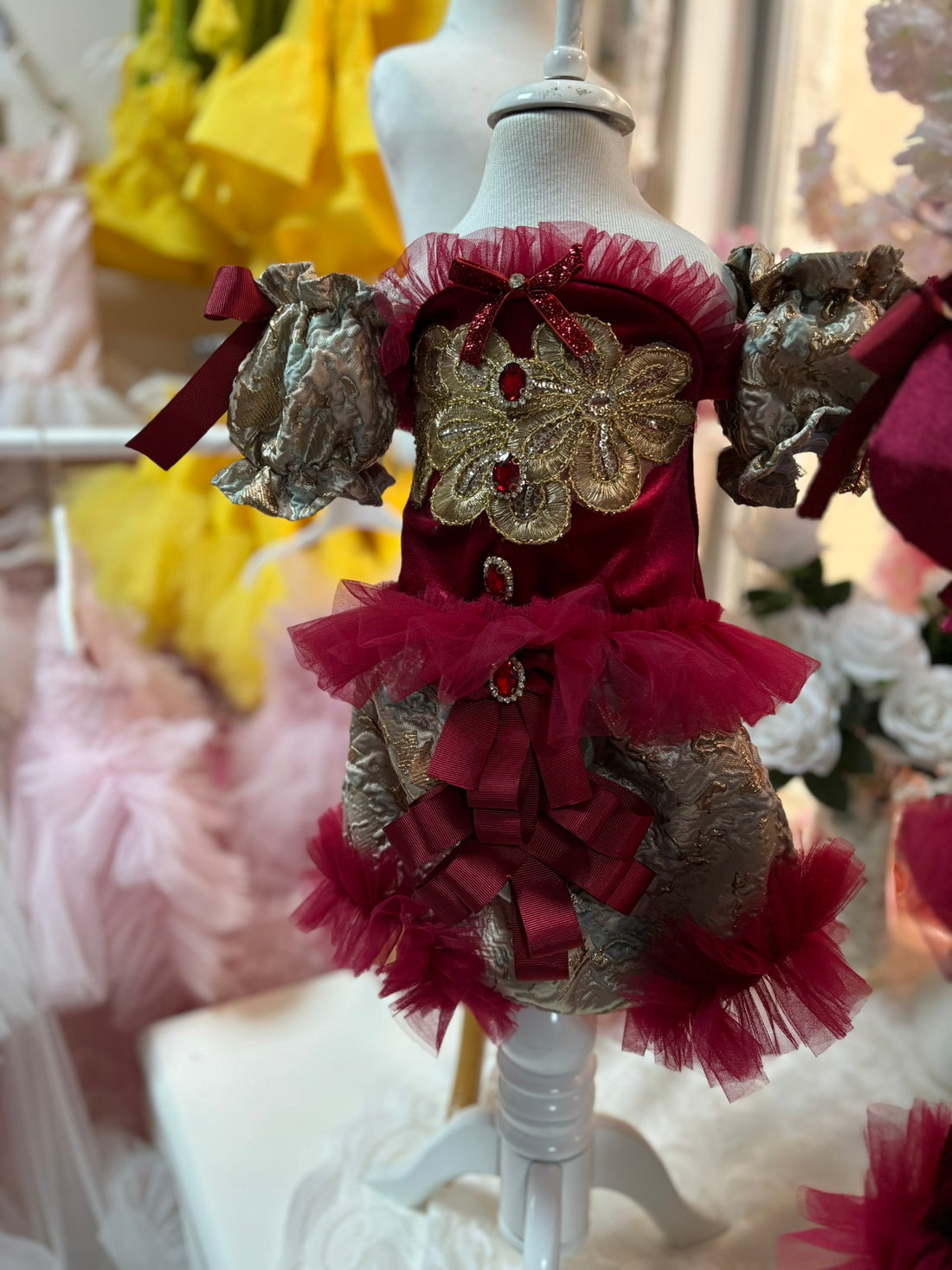 Holiday Red Flower Desing Dresses Short And Sleeves