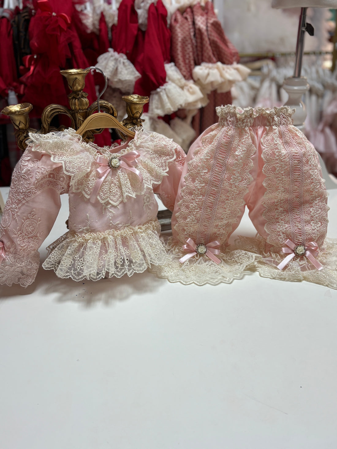 Elevate your collection with this exquisite pink lace cotton ensemble, featuring a graceful dress paired...