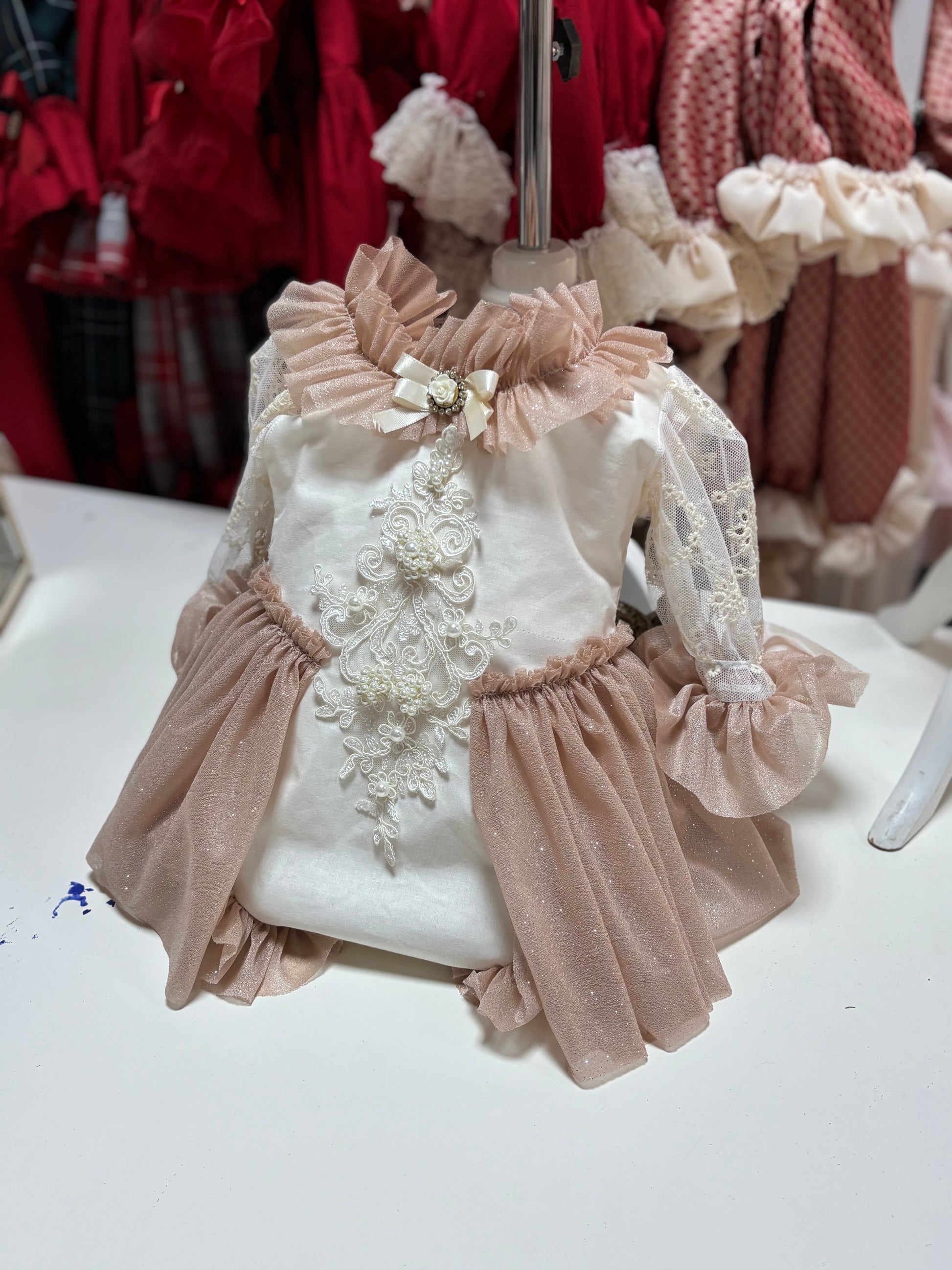 Every piece is lovingly finished with lace, tulle, and pearl touches.