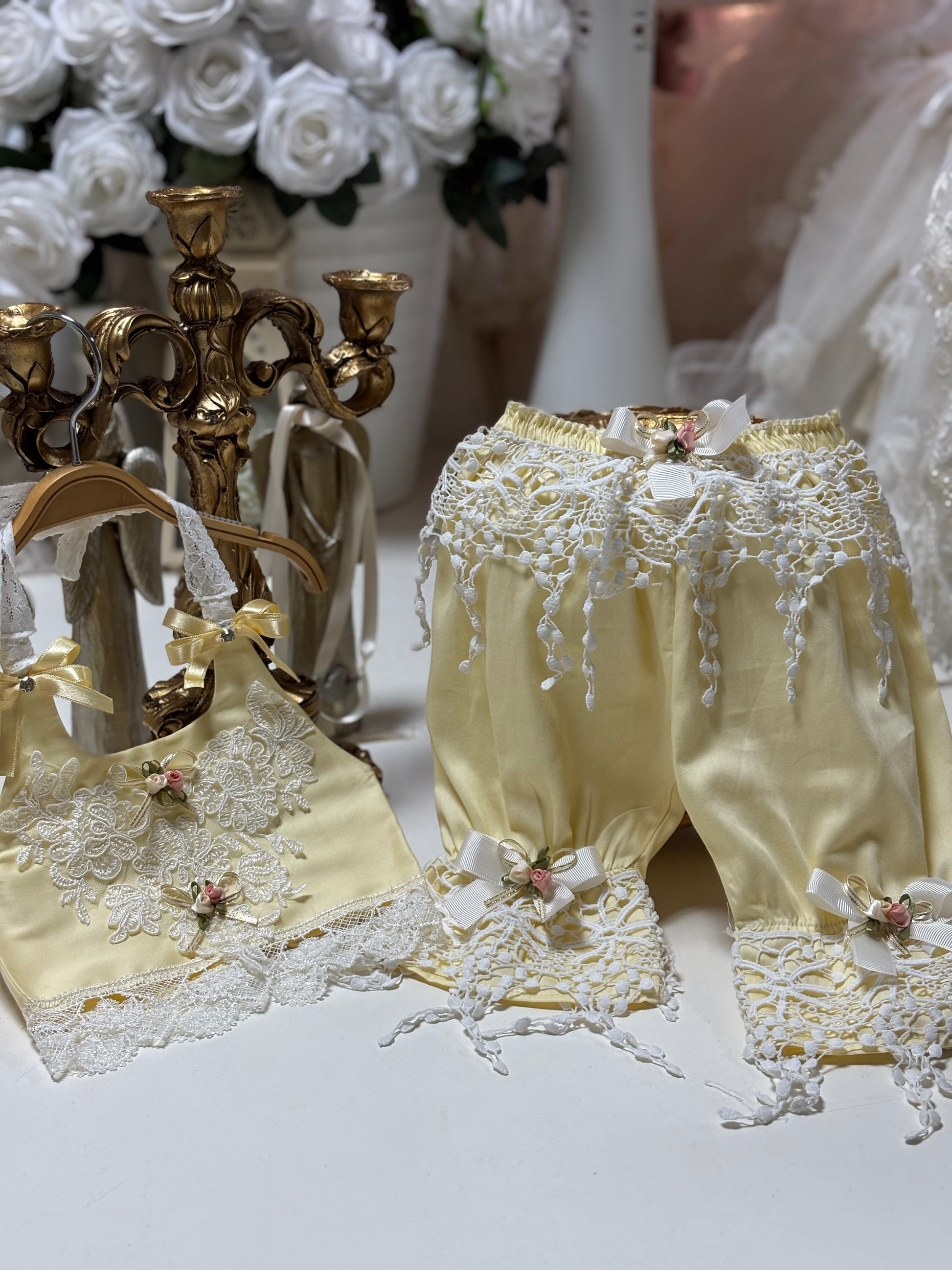 Every piece is lovingly finished with lace, tulle, and pearl touches.